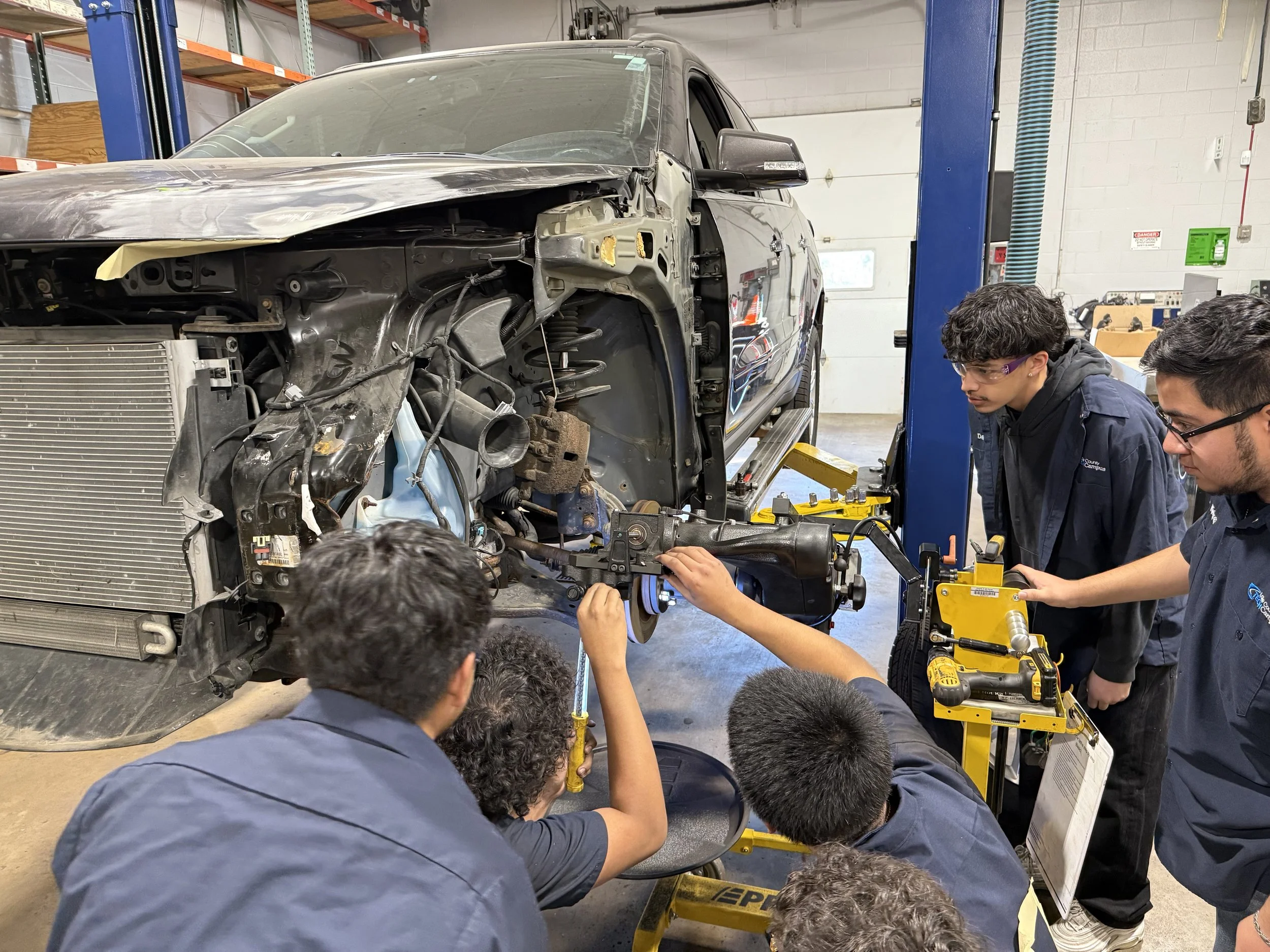 This vehicle was generously donated to the program and is now being diagnosed, repaired, and restored by our talented junior and senior students. Under the guidance of Jack Wilson (Automotive Repair) and Ben Cizowski (Automotive Collision), students are gaining valuable hands-on experience — from mechanical diagnostics and brake system repairs to body refinishing and paint preparation.